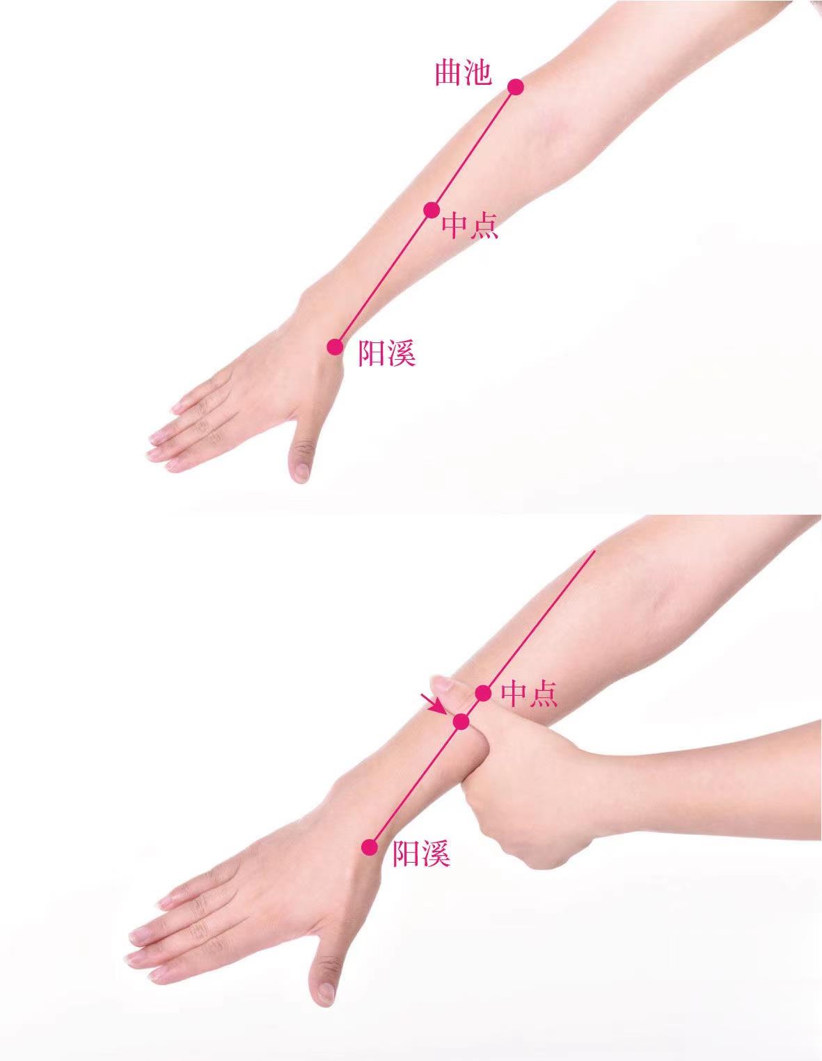 【位置】腕背側(cè)遠端橫紋上5寸,陽溪與曲池連線上