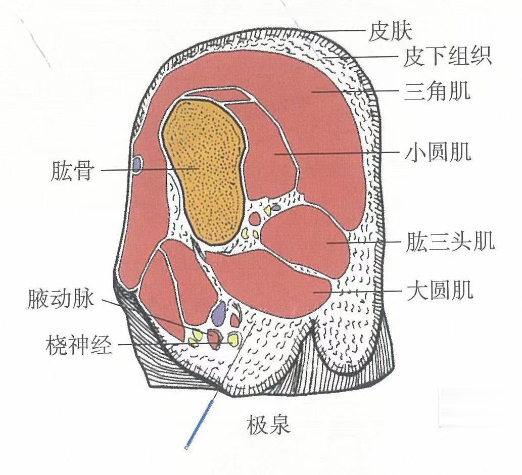 【針刺層次】上臂外展,避開腋動脈,直刺或斜刺0.5~0.8寸。