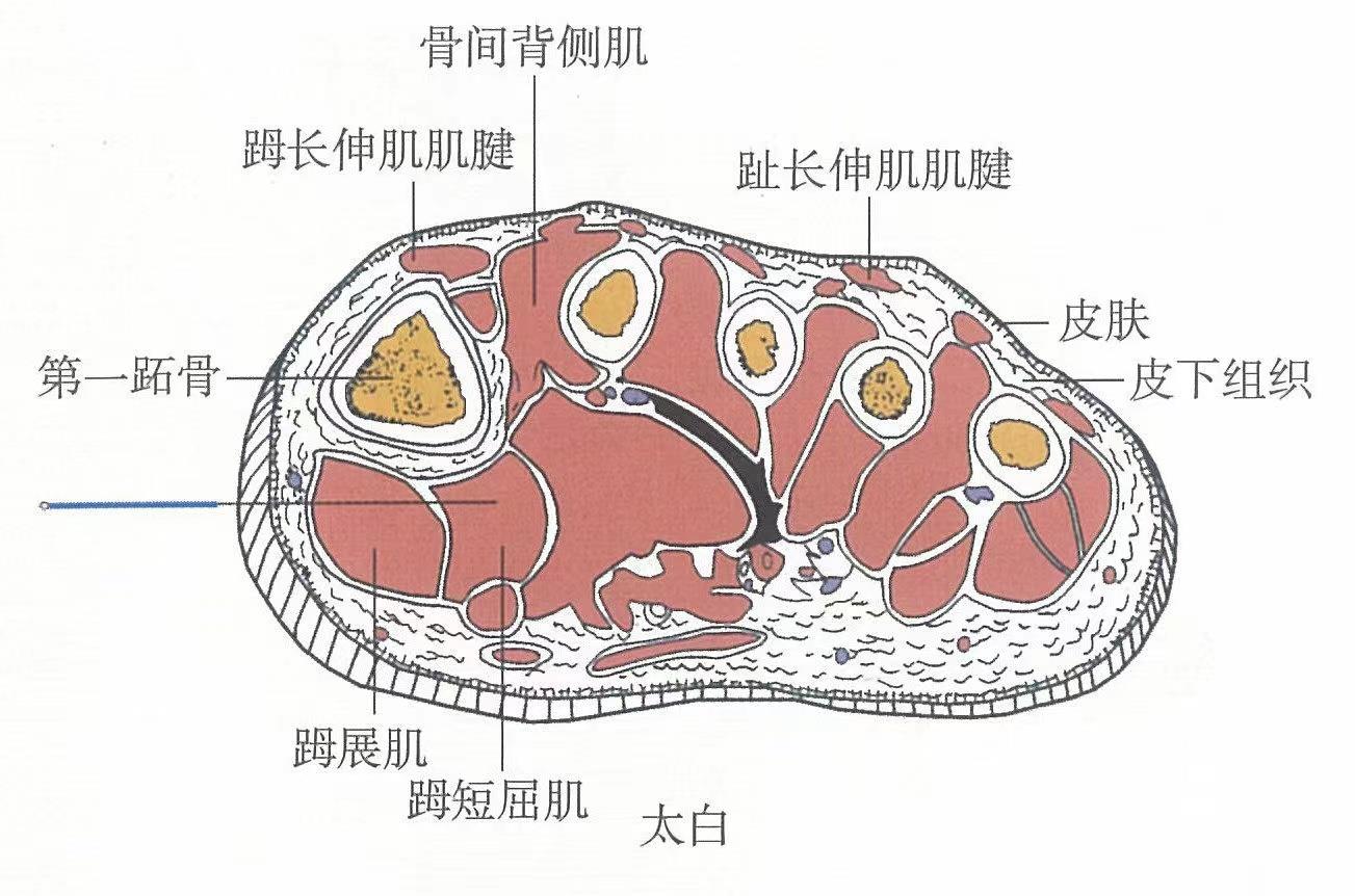 【解剖】皮膚→皮下組織→展肌→短屈肌。淺層布有隱神經(jīng),淺靜脈網(wǎng)等。深層有足底內(nèi)側(cè)動(dòng)、靜脈的分支或?qū)僦?,足底?nèi)側(cè)神經(jīng)的分支。