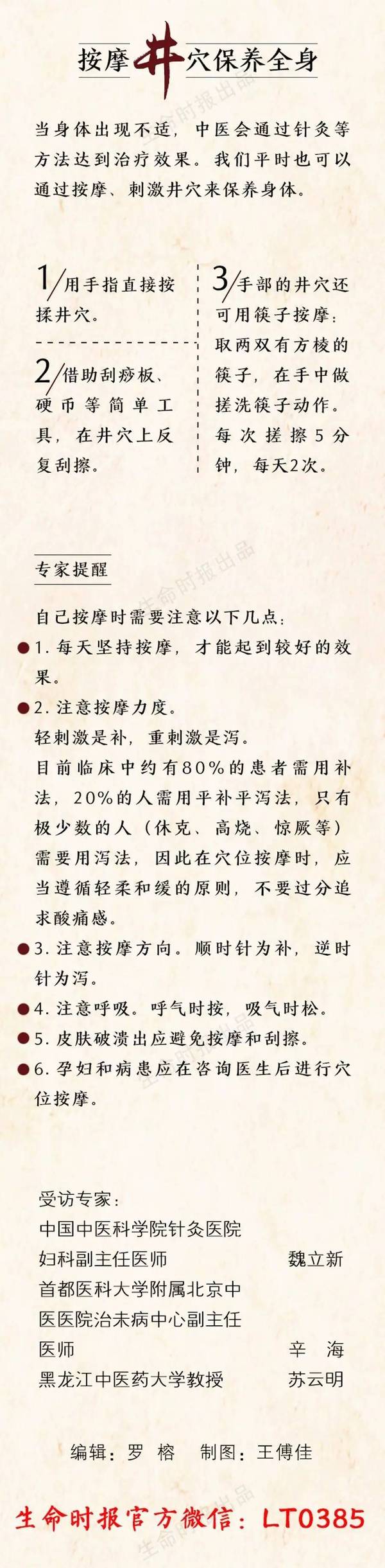 原標(biāo)題:按摩12個(gè)“井穴”養(yǎng)全身!中醫(yī)專家親授按摩手法(附穴位圖)