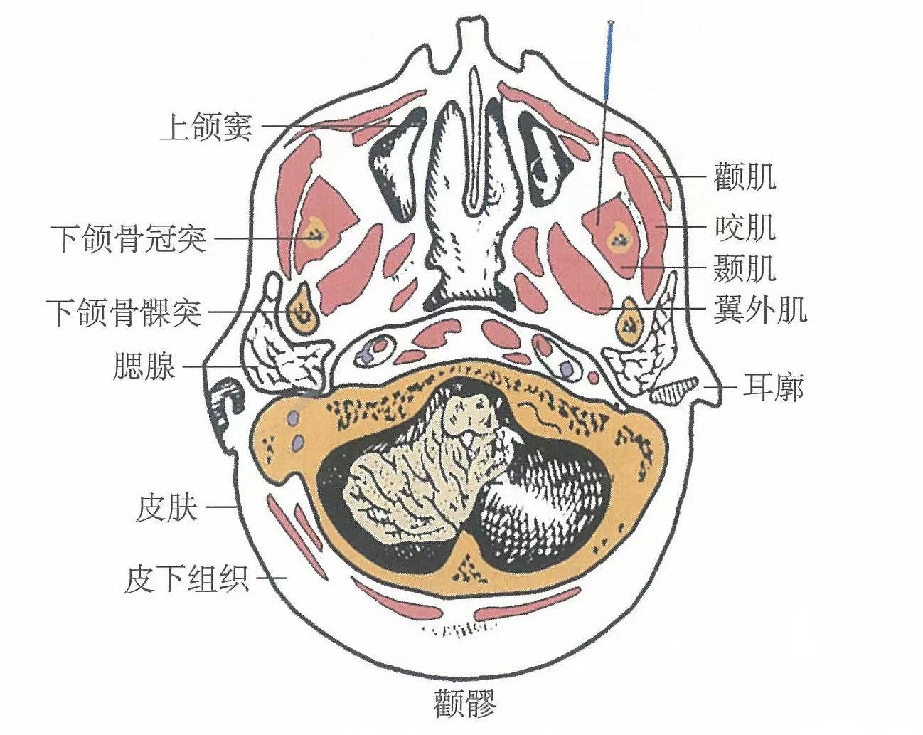 【解剖】在顴骨下頜突的后下緣稍后,咬肌的起始部,顴肌中;有面橫動(dòng)、靜脈分支;布有面神經(jīng)及眶下神經(jīng)。