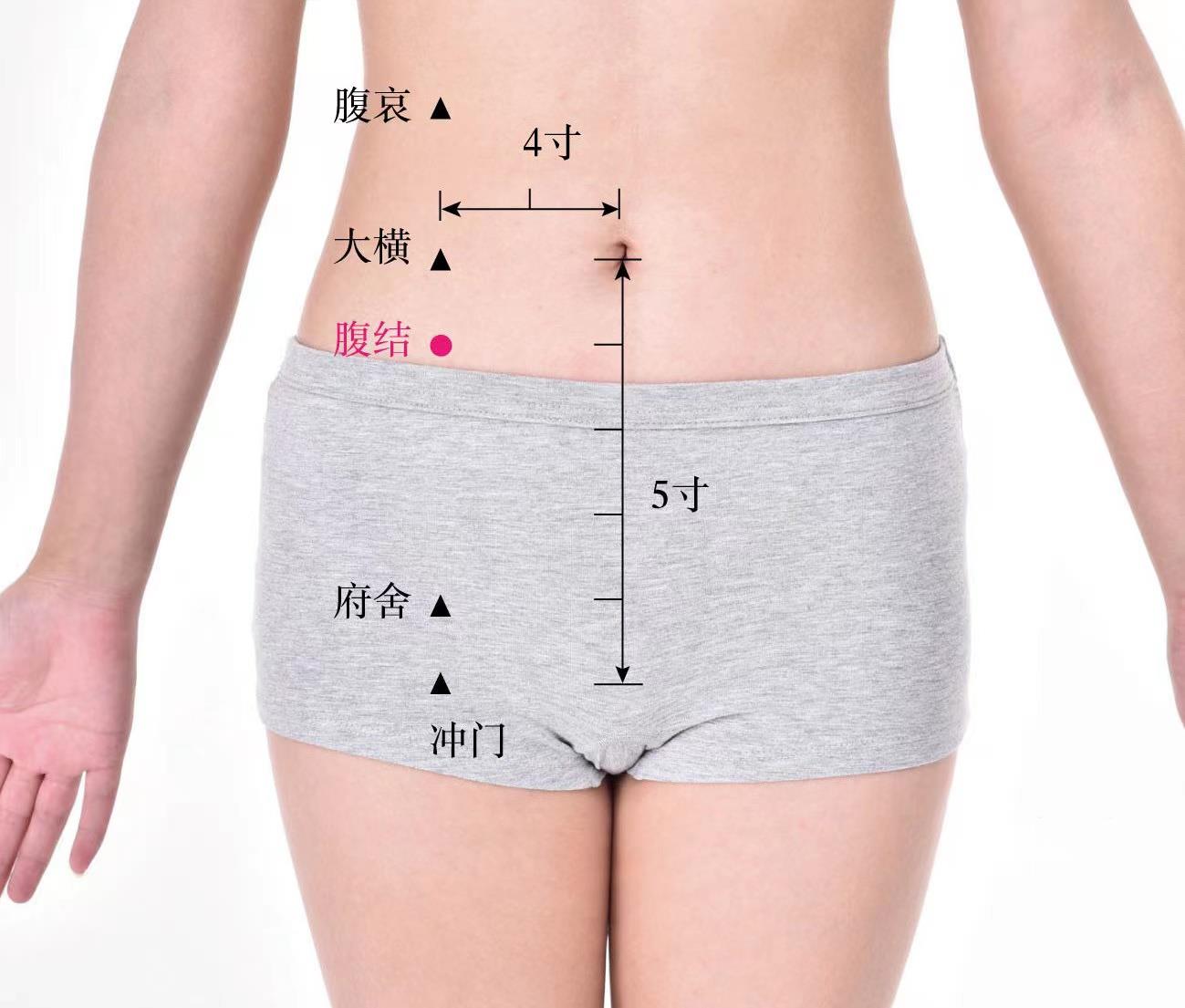 【取穴方法】仰臥,在府舍上你必須知道,距任脈4寸,當(dāng)府舍與大橫的連線上取穴。