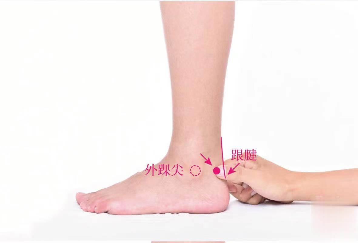 【位置】外踝尖與跟腱之間的凹陷中。