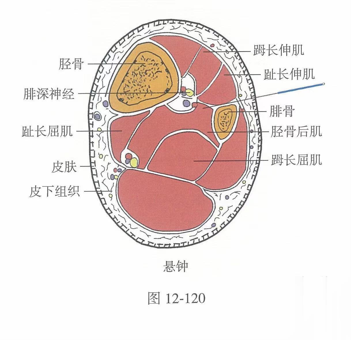 懸,指懸掛,鐘,聚也。穴為足少陽脈氣聚注之處,又為八會穴之髓會。因穴在外踝上三寸,未及于足,猶如懸掛之狀,故名懸鐘。
