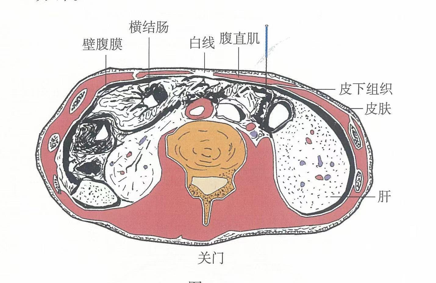 【解剖】皮膚→皮下組織→腹直肌鞘前壁→腹直肌。淺層布有第7、8、9胸神經(jīng)前支的外側(cè)皮支和前皮支及腹壁淺靜脈。深層有腹壁上動、靜脈的分支或?qū)僦В?、8、9胸神經(jīng)前支的肌支。