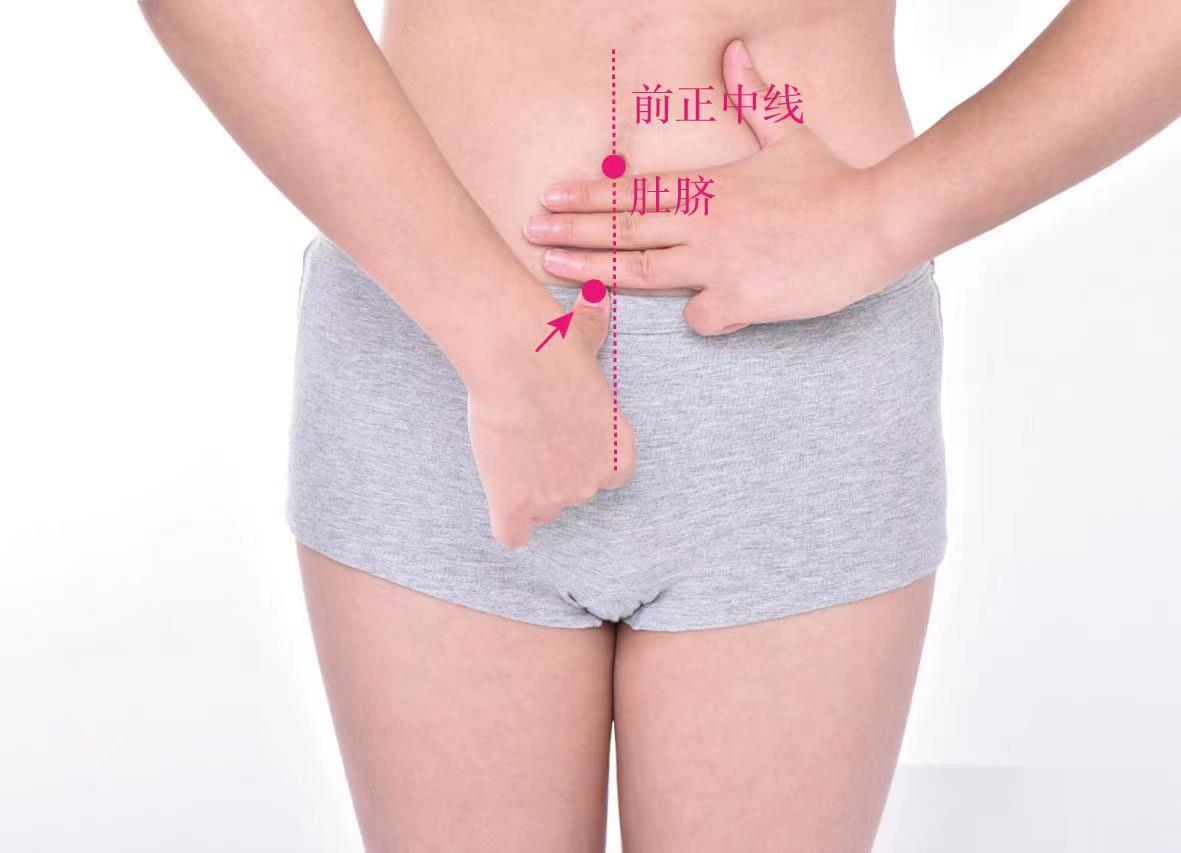 【取穴方法】仰臥位,在橫骨上3寸,石門(任脈)旁開0.5寸處取穴。