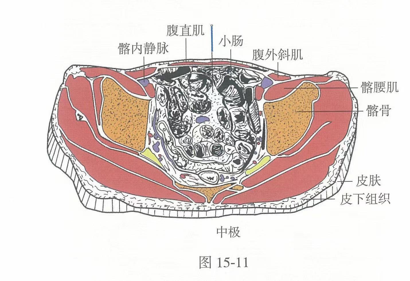 【解剖】在腹白線上,有腹壁淺動、靜脈分支和腹壁下動、靜脈分支;布有髂腹下神經(jīng)的前皮支;深部為乙狀結腸。