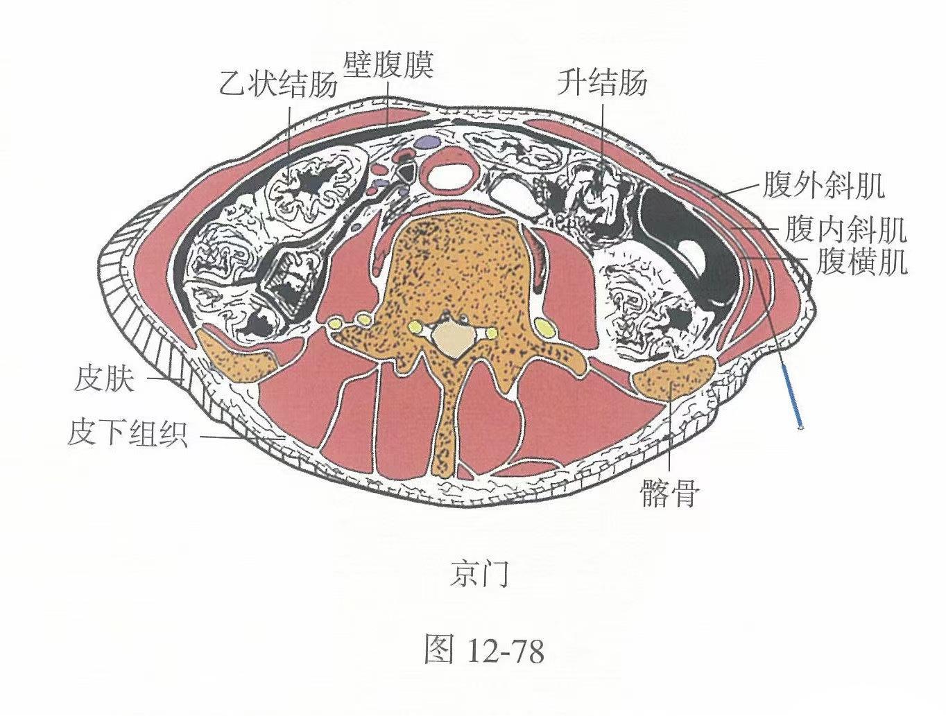 【解剖】有腹內(nèi)、外斜肌及腹橫肌;有第11肋間動、靜脈;布有第11肋間神經(jīng)。